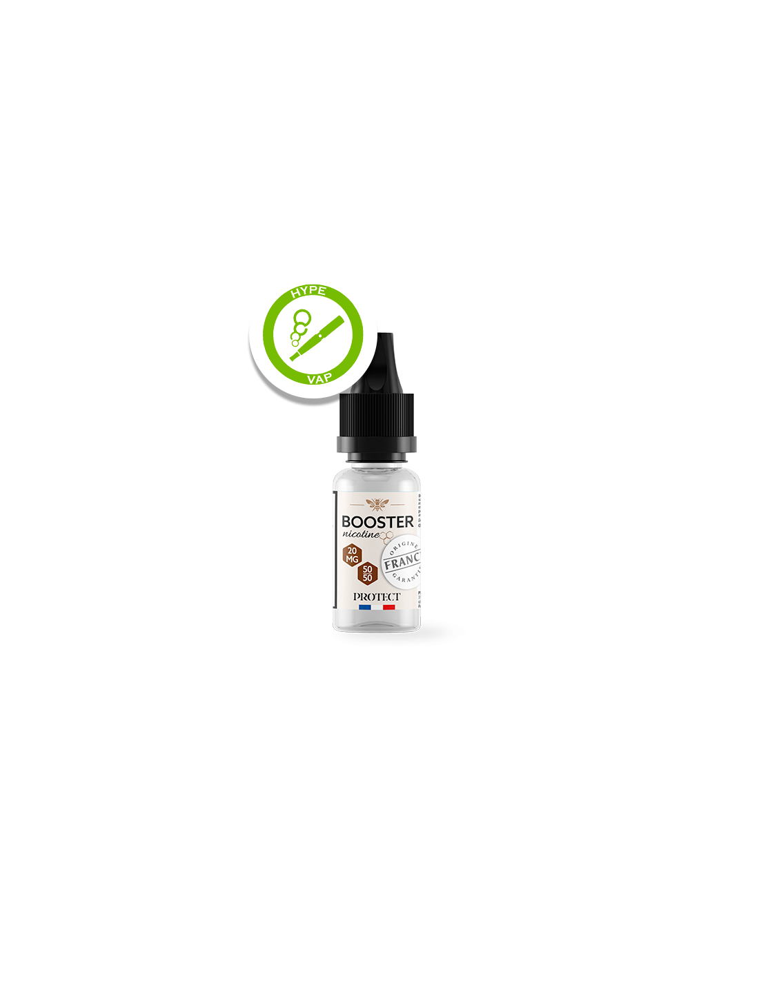 Booster Protect aux sels de nicotine, format 10 ml, taux 20 mg/ml, ratio MPGV/VG 50/50. Destiné au mélange avec une base neutre ou un e-liquide sans nicotine.